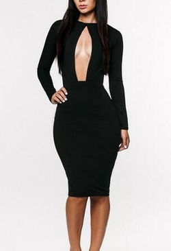 Scoop Collar Cut-Out Long Sleeves Waist Packet Buttock Sexy Dress